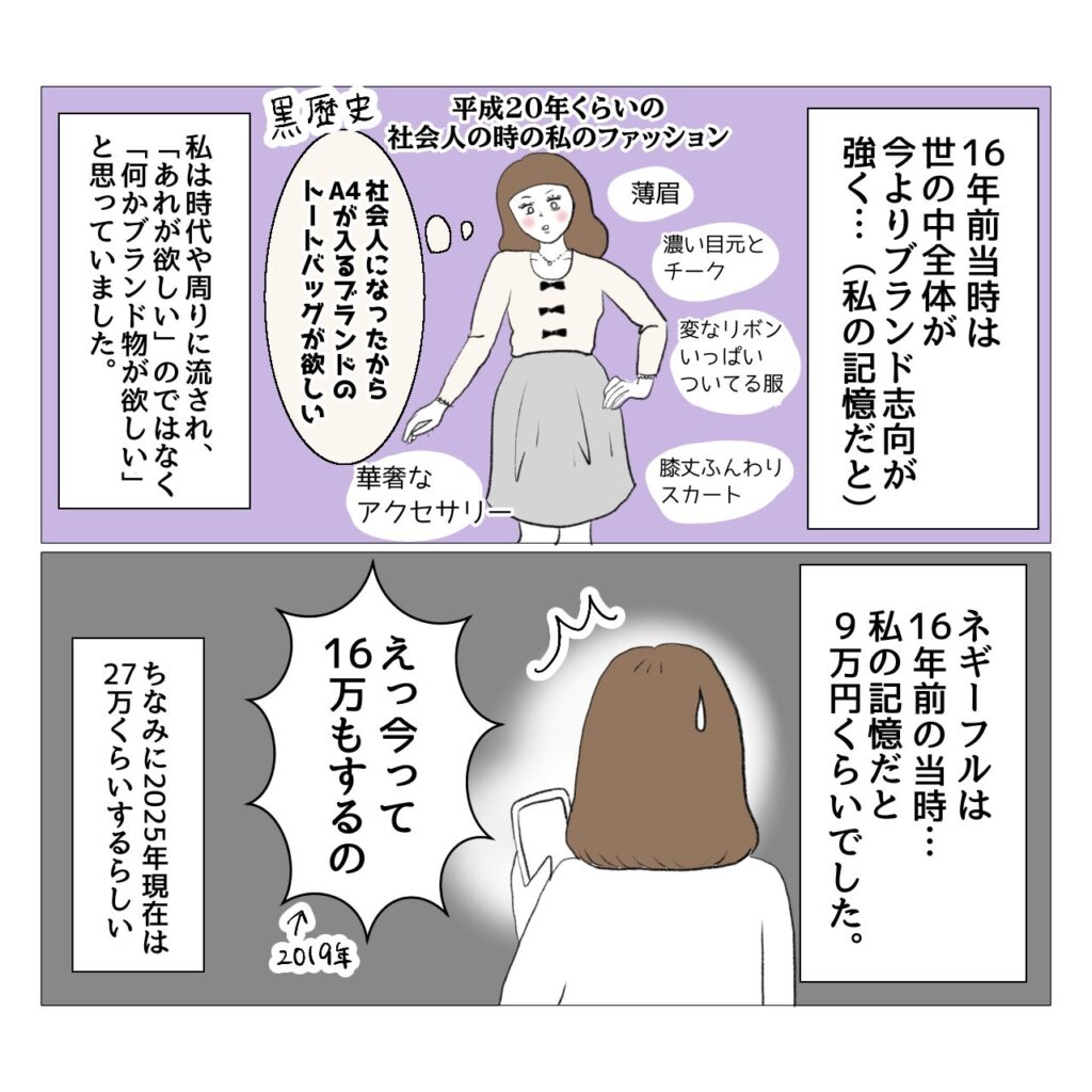 突然漫画の話に戻るんですが、平成20年頃…こういうファッションで、でかいブランドの長財布を持ってお昼ランチやカフェに行く…という女性が、私が新卒入社した会社にはたくさんいました。