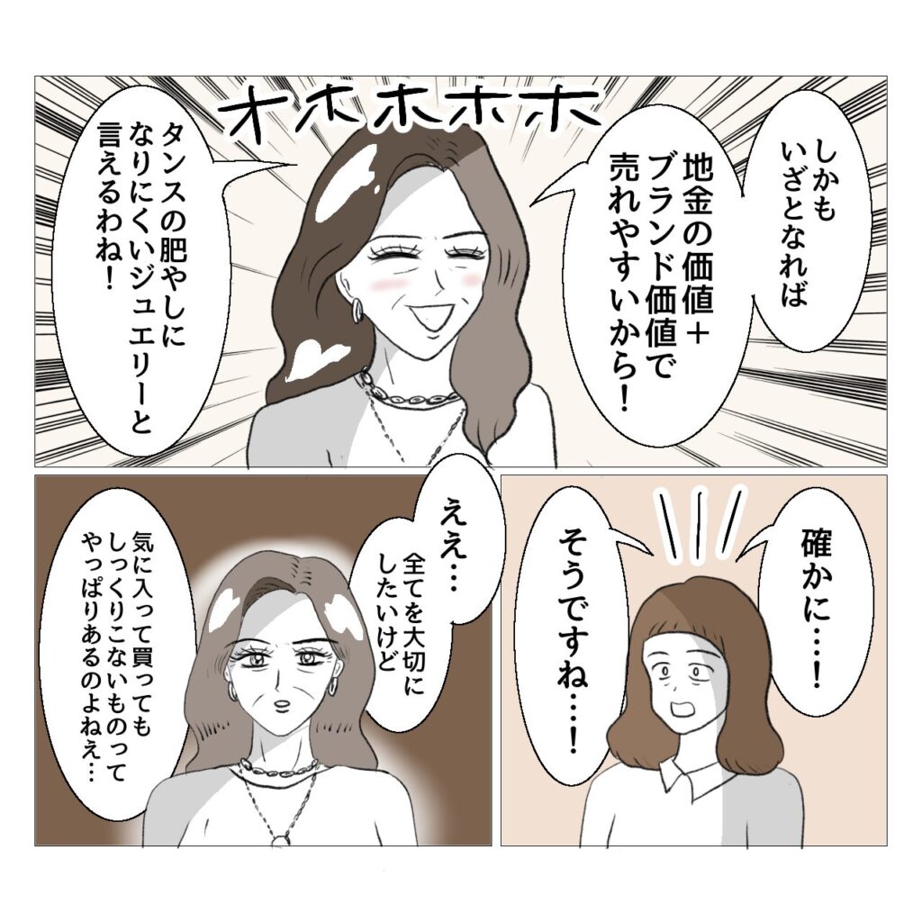 ハイブランドジュエリーもこんなに値上がりするとは思わなかったです。若いときにもっと買っておけばよかった。さらに言うと住宅価格もこんなに値上がりするなんて思わなかった。結婚してすぐ住宅を買っておけばよかった。