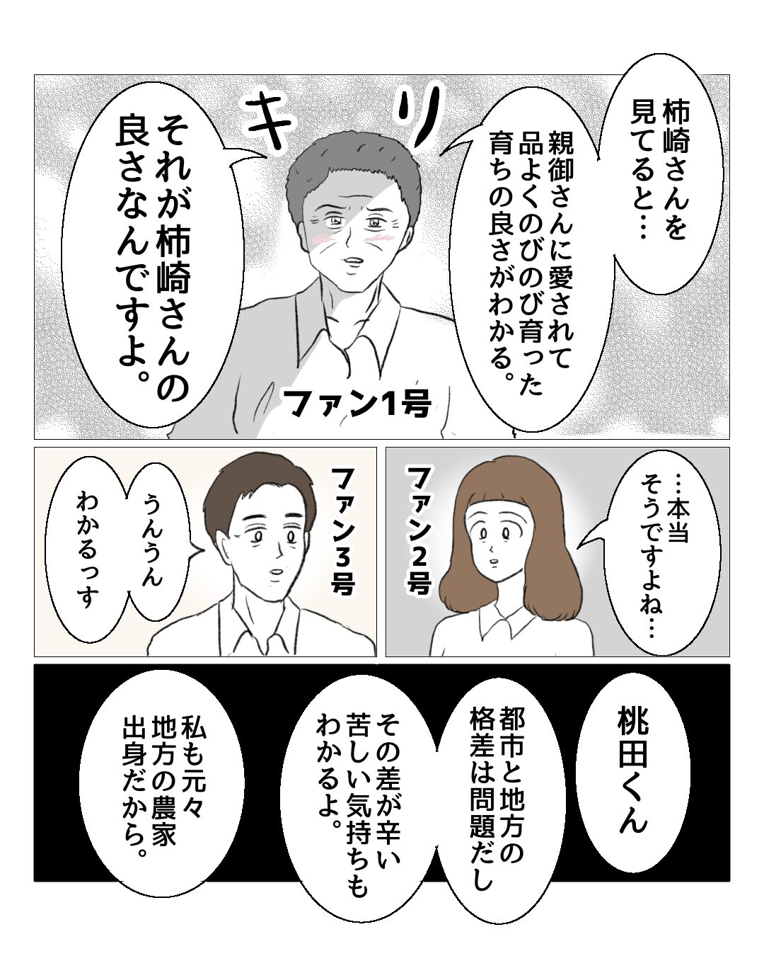 前話の桃田さんの主張…私も田舎出身なので言いたいことはなんとなくわかるんです。それで柿崎さんをねたむのは間違ってると思うけど…。