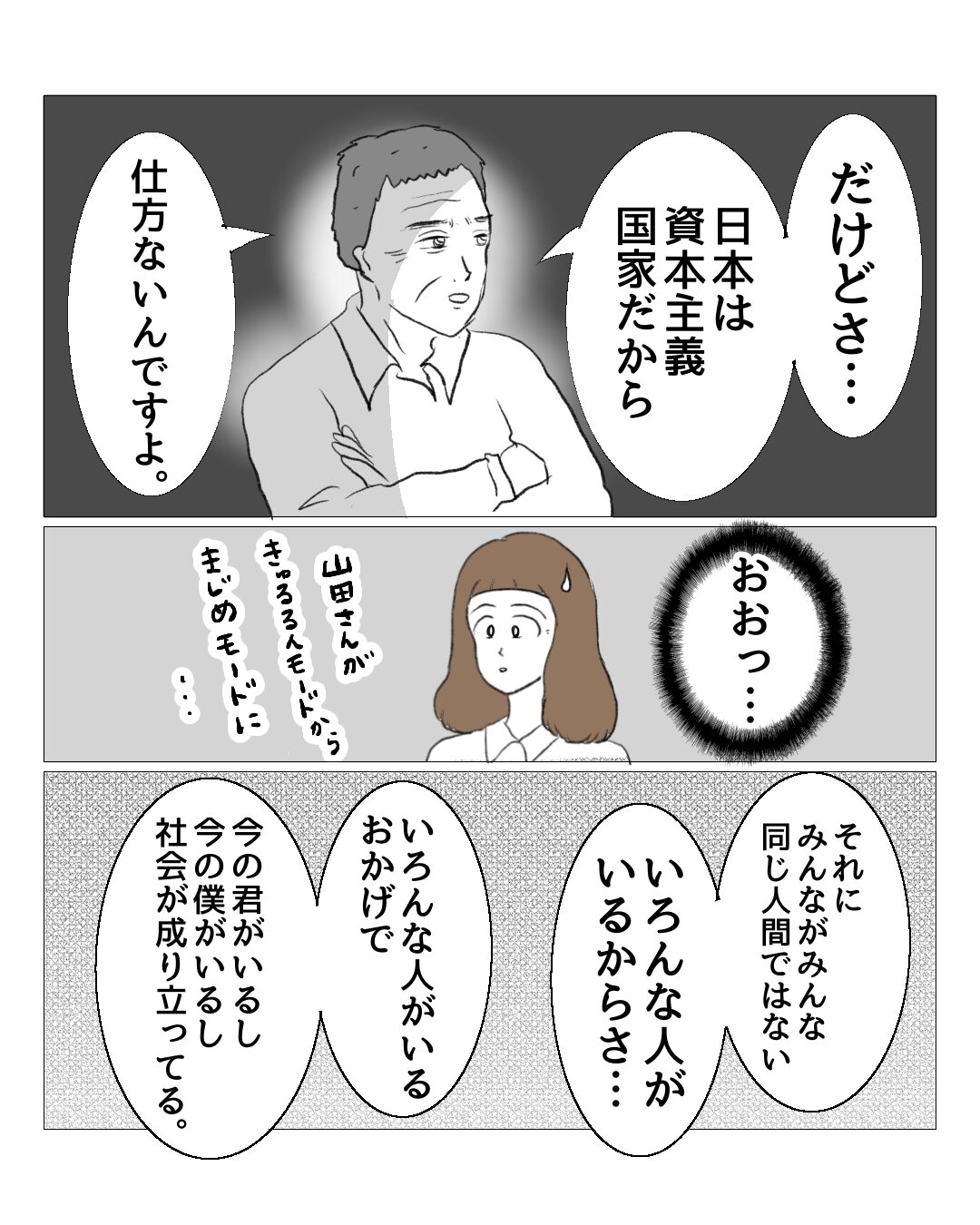 意見や感性、美意識、価値観、金銭感覚などが違うことを理由に、他人に苦言を呈したりかみついてる人をたまにネットで見るんですけど、そういう時に山田さんの話を思い出します。私も気を付けます。