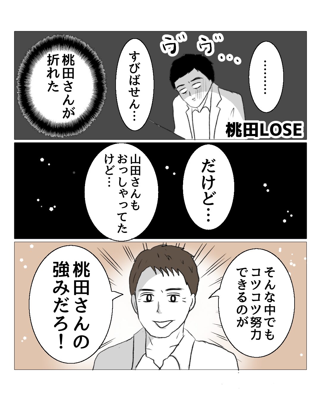 桃田さんの良い所を褒めつつ、違うことは違うって教えてくれる。明日からもよろしくね、って言える素敵な方ですね。