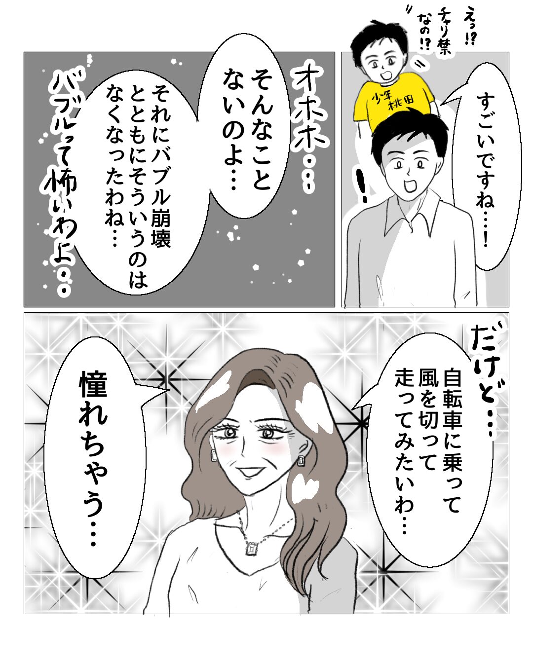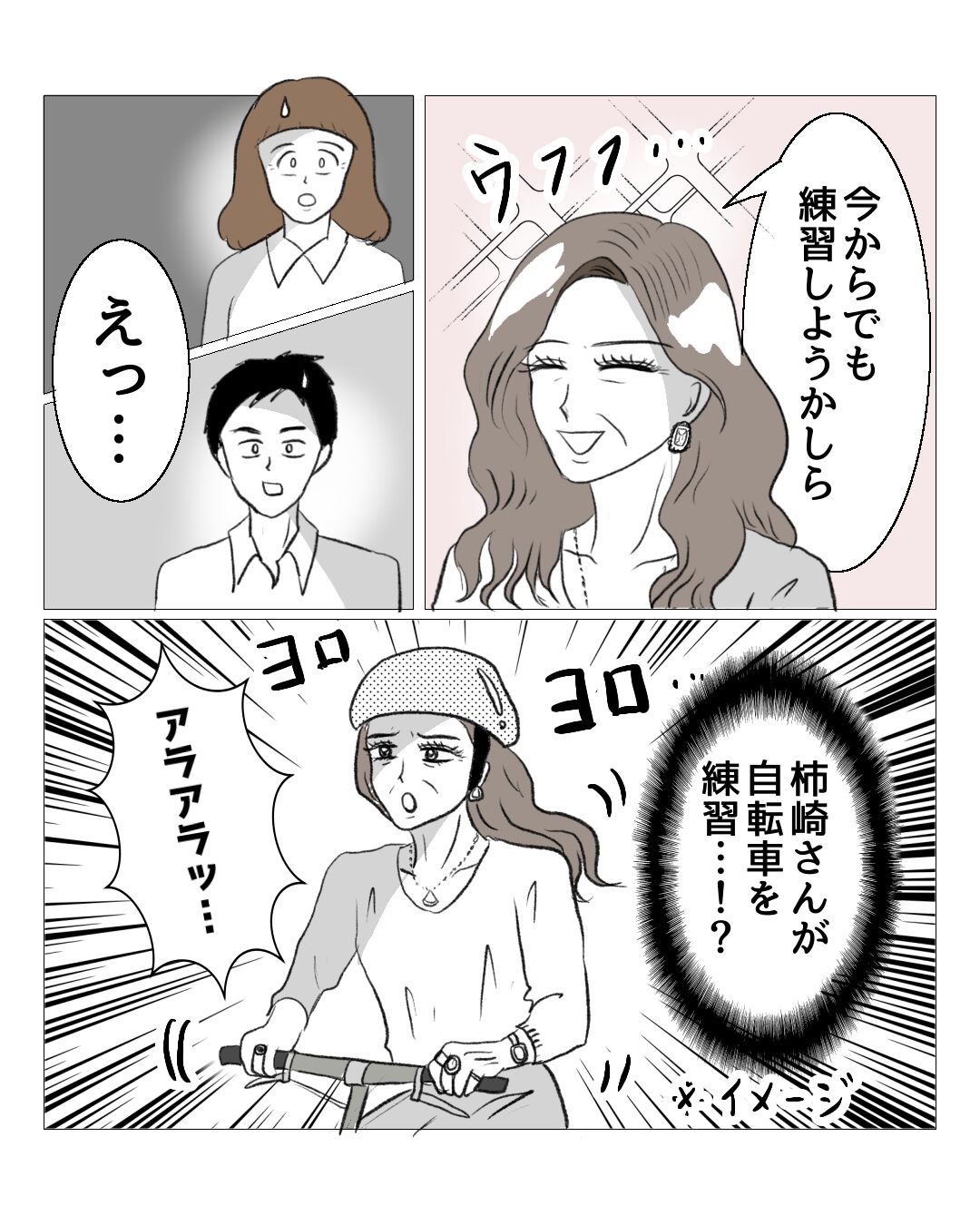 柿崎さんが自転車に乗れないという話を思い出したので、漫画にしてみました(^^)