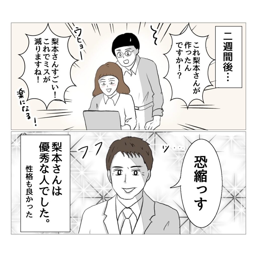 そして柿崎さんがここまで美しくなかったら、梨本さんはここまで動いたのだろうかという疑問もあります…。美人は得です。(柿崎さんは爆速で処理したいので、得したとは思ってないだろうけど。)