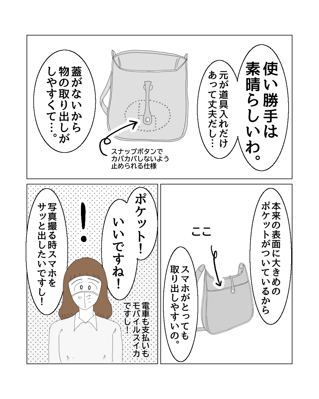 エブリン、母のおさがりを貰ったのですが漫画にあるようにかわいくてカジュアルでどこでも連れて行けるし、なんでも入るのにバカでかく見えないPMサイズ最高です!