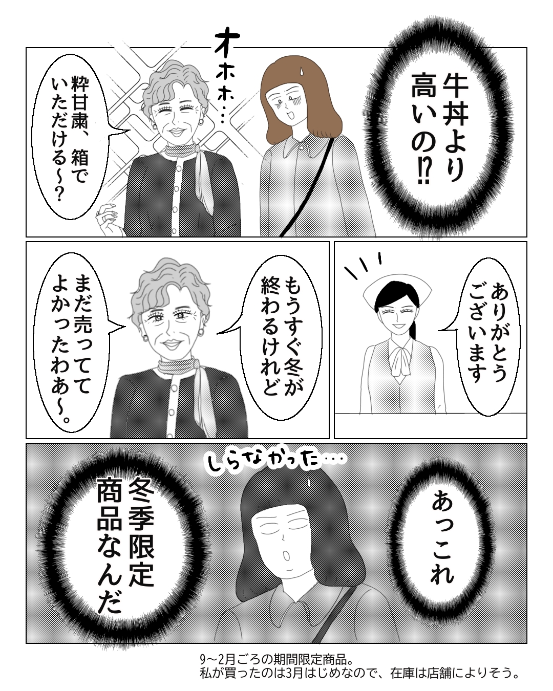 この冬はもう売ってないかもしれないですが、皆さんも粋甘粛を見かけたらぜひお試しください♪(回し者ではありません。)