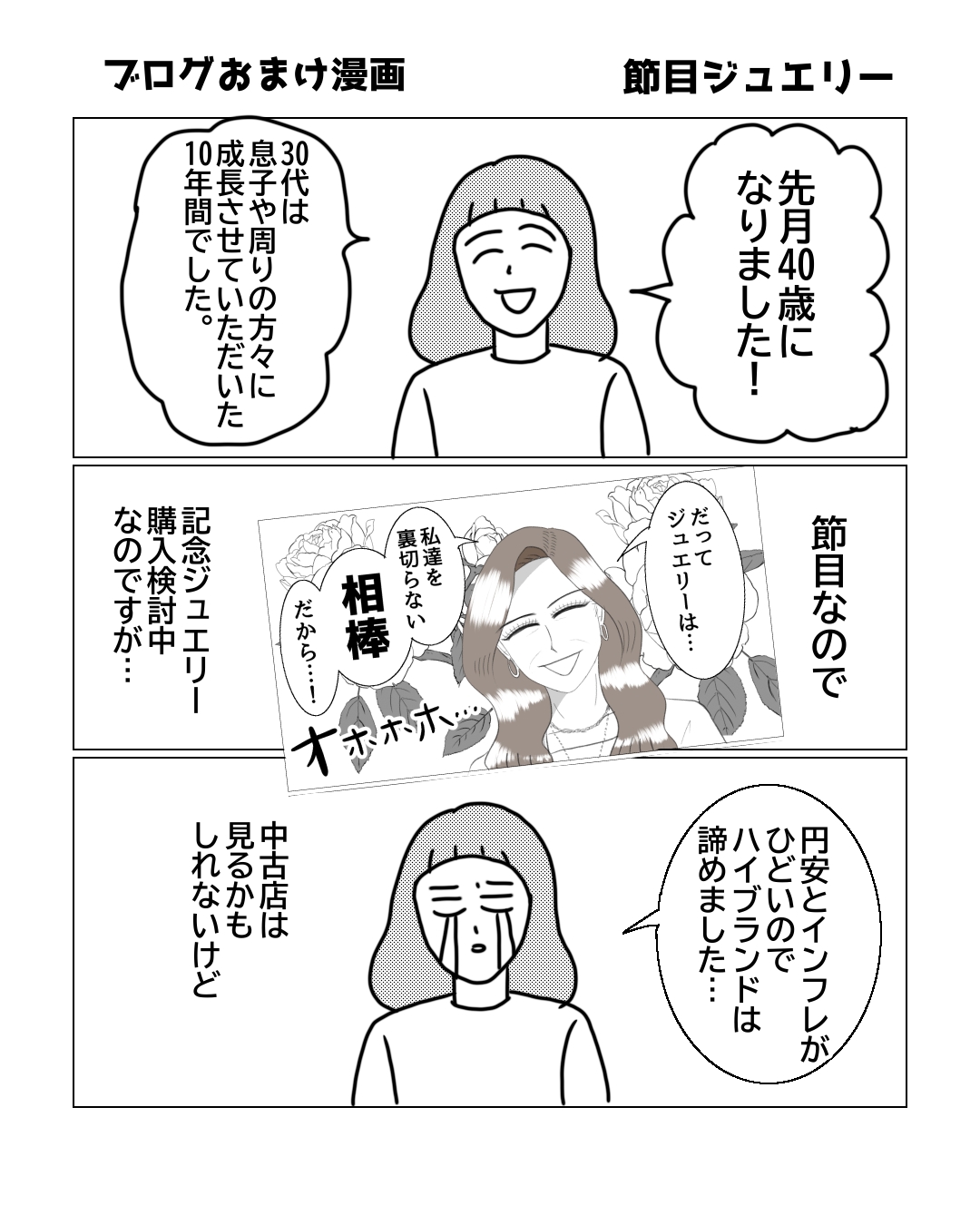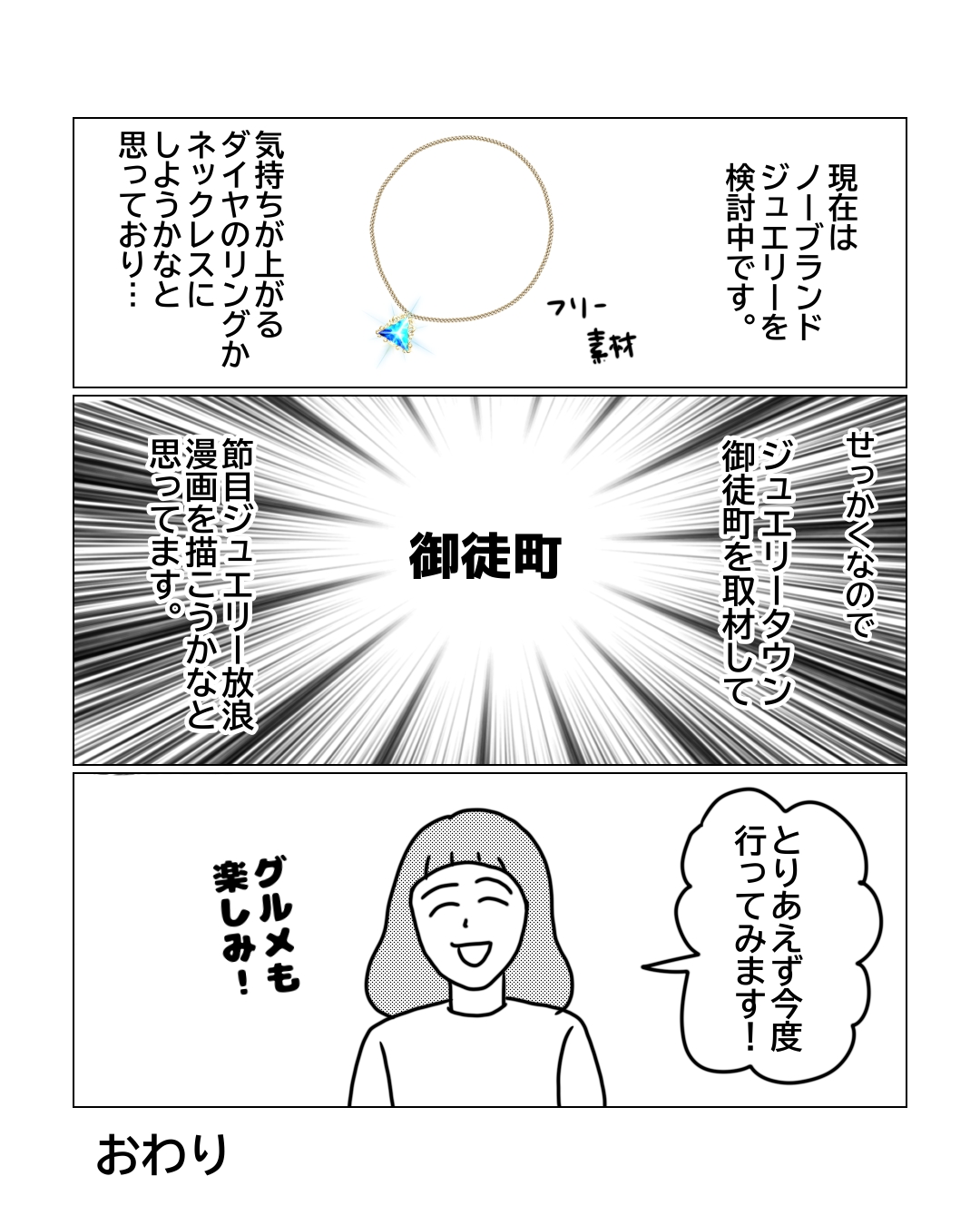 節目のジュエリー、いいですね!御徒町レポ漫画も楽しみにしています!
