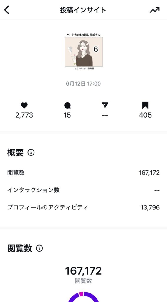 過去30日のアカウント全体の閲覧数も90万回になっていました!先月まではずーっと30~40万回くらいで、良い時で60万回程度だったので、柿崎さんのお話が伸びてて嬉しいです( ;∀;)