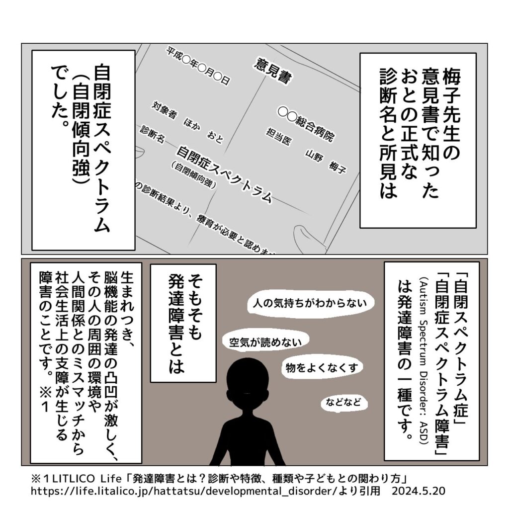 カナー型自閉症なのか、高機能自閉症なのか…という知的障害の有無はとっても気になっていましたが、当時まだ2歳、誰もわからないのでした。知的障害の有無によって、進路がかなり変わりますからね…。結局、知的障害の診断がついたのは5歳でした。