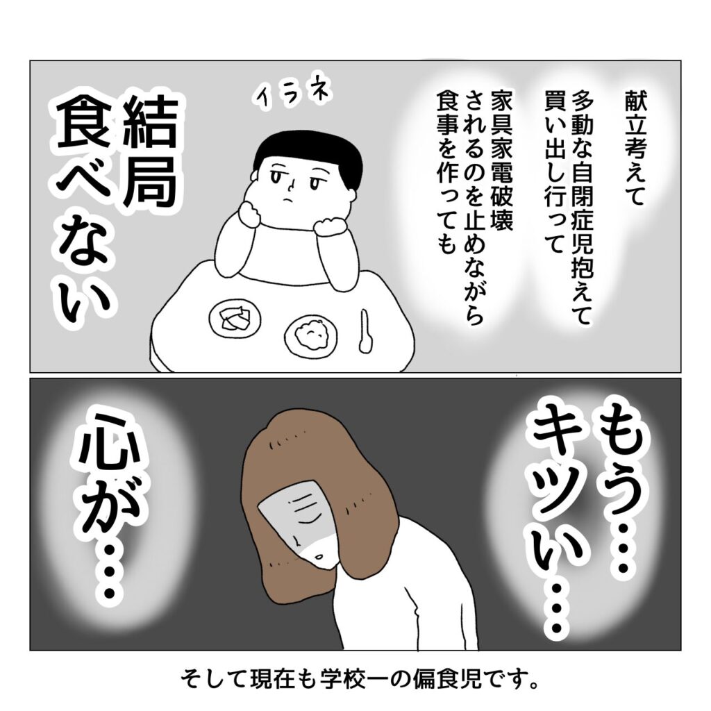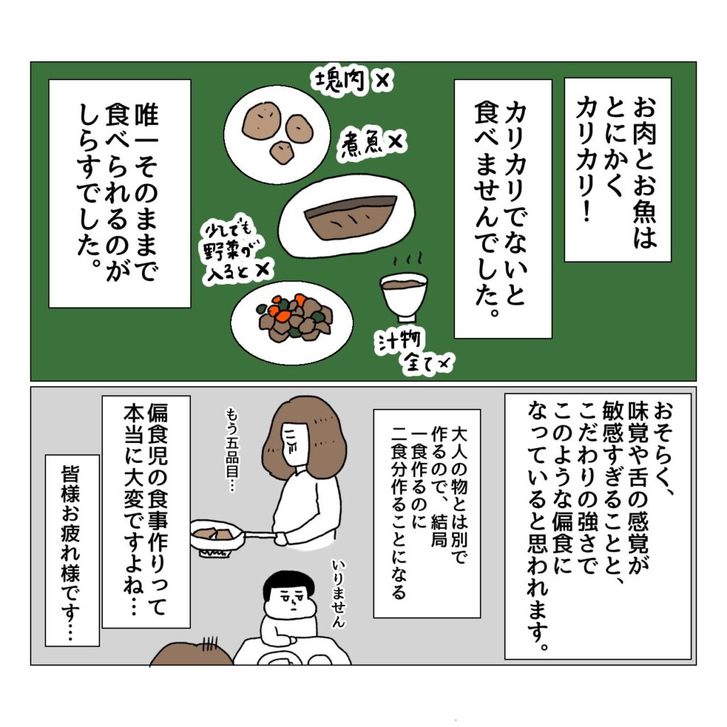 一時期、発達障害と栄養について真剣に考えていた時期、グルテンフリーやカゼインフリーや添加物NGの食事作りに取り組み、そこにおとの偏食も加わっていたので、すっごいキツかったです…。大変で私のメンタルがおかしくなってしまい、もうやってませんが…。この栄養のことについてもいつか漫画に描きたいです。