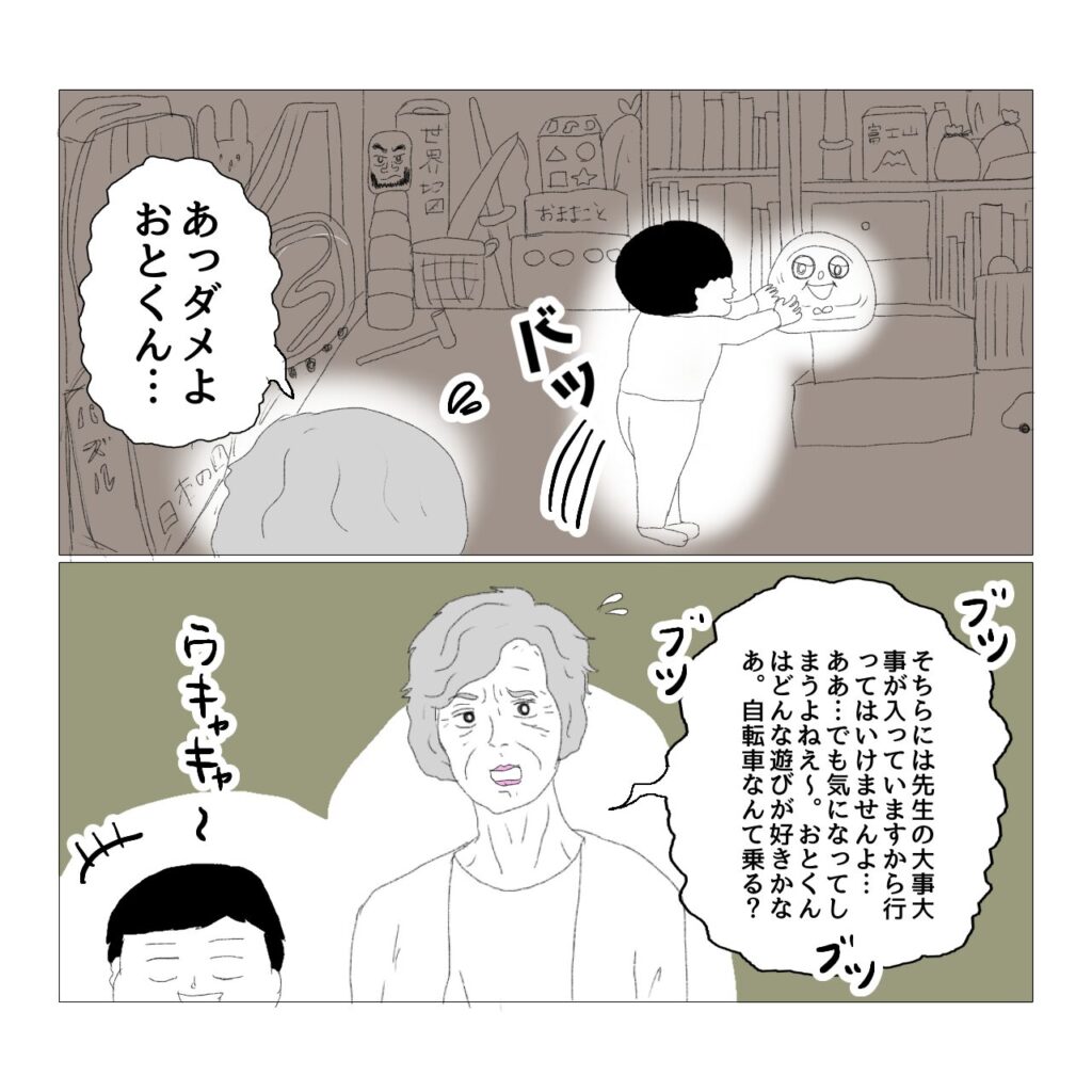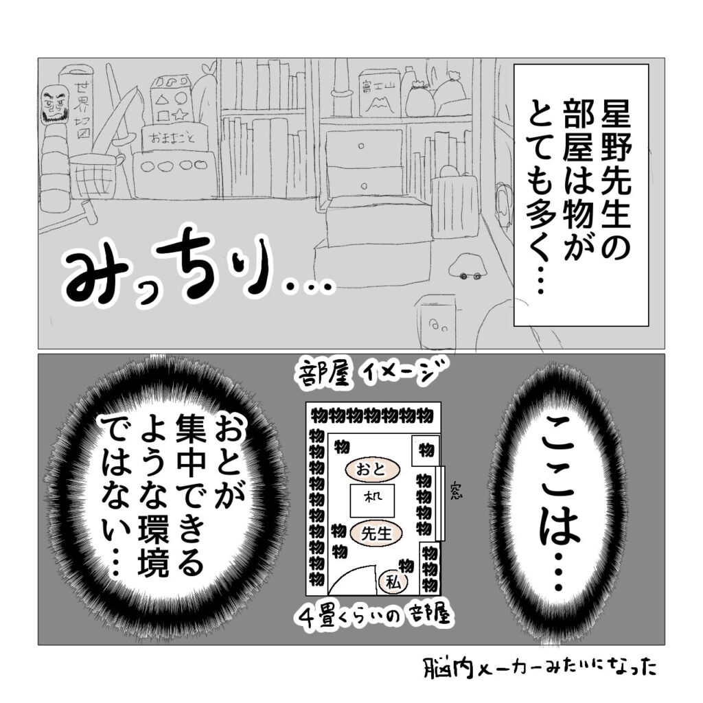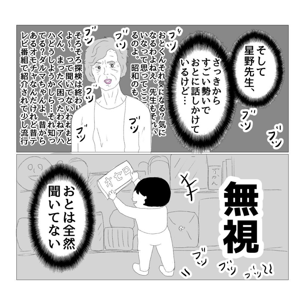 おとが部屋にあるたくさんの物に気持ちが行ってしまい星野先生の話を全く聞いていないのですが、星野先生はあまり意に介さずそのまましゃべり続けていて衝撃でした。どう見てもおとは集中できていない。他の子はどうしているんだろう?と、私はとても不思議でした。