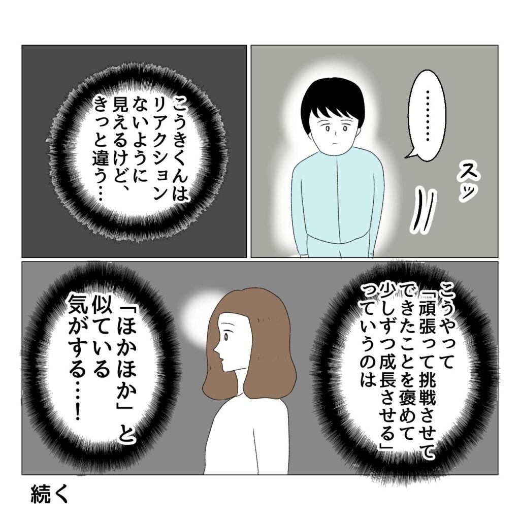 当時おともそうでしたが、できたことを褒められてもリアクションが薄く、一見響いてないように見えるのですが、その後少しずつ定着していくのを見ると、きっと本人には響いてるんだろうなあと思います。