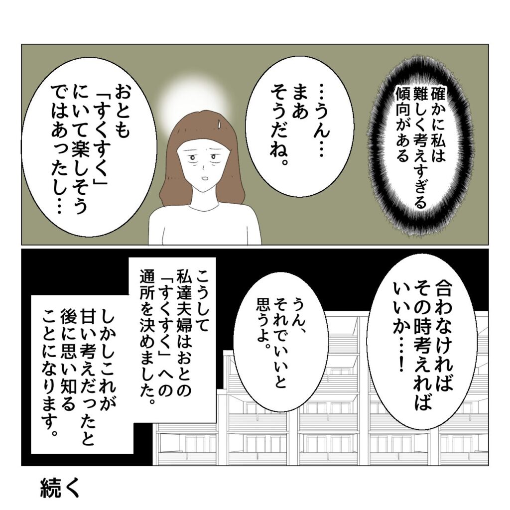 この時は「合わなければ辞めればいい」と夫婦で結論を出しましたが…多くのことでそうなんですけど、始めるよりも辞める・止める時のほうが大変なんですよね。