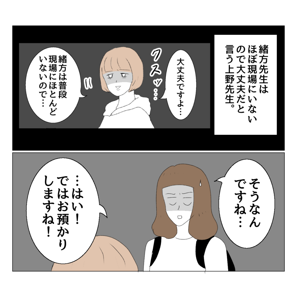 上野先生が辞めてしまいました。急にだったのか、前々から決まっていたのかは知らないのですが、人手不足のために緒方先生が現場に出てきた…!