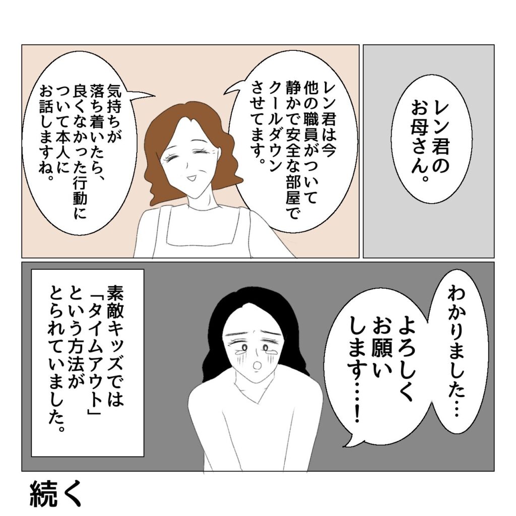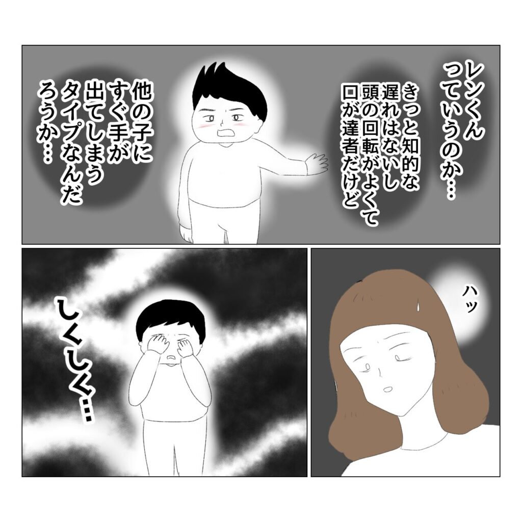 私は当時レン君のような子を初めて見たので驚きました。彼はすごく頭の回転が良くて、自分に不利な状況を察知すると大人を言い負かすくらいバーっとまくし立てるのですが、きっと色々なことに過敏で、そして衝動性が抑えられなくて、他害に走ってしまうタイプの子のようでした。