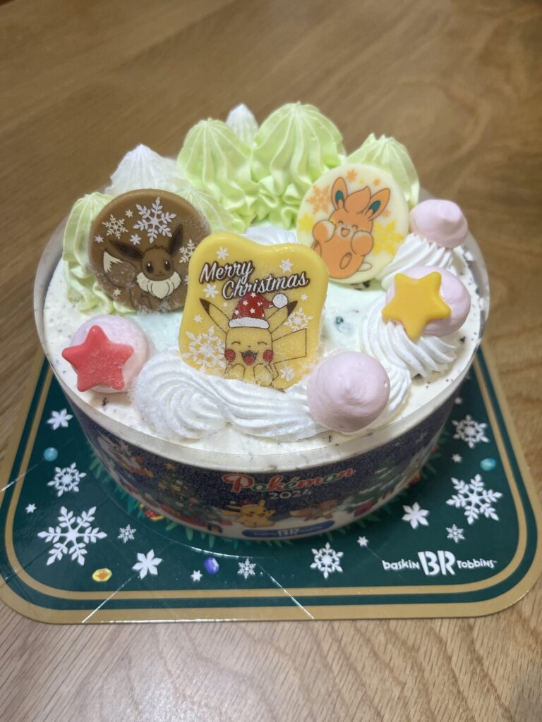 今年のクリスマスケーキはサーティワンのアイスケーキにしました。もちろんおとがポケモンのデザインで選びました。食べきれなかったけどアイスなので何日か平気だろう。ちょっとずつ食べます。