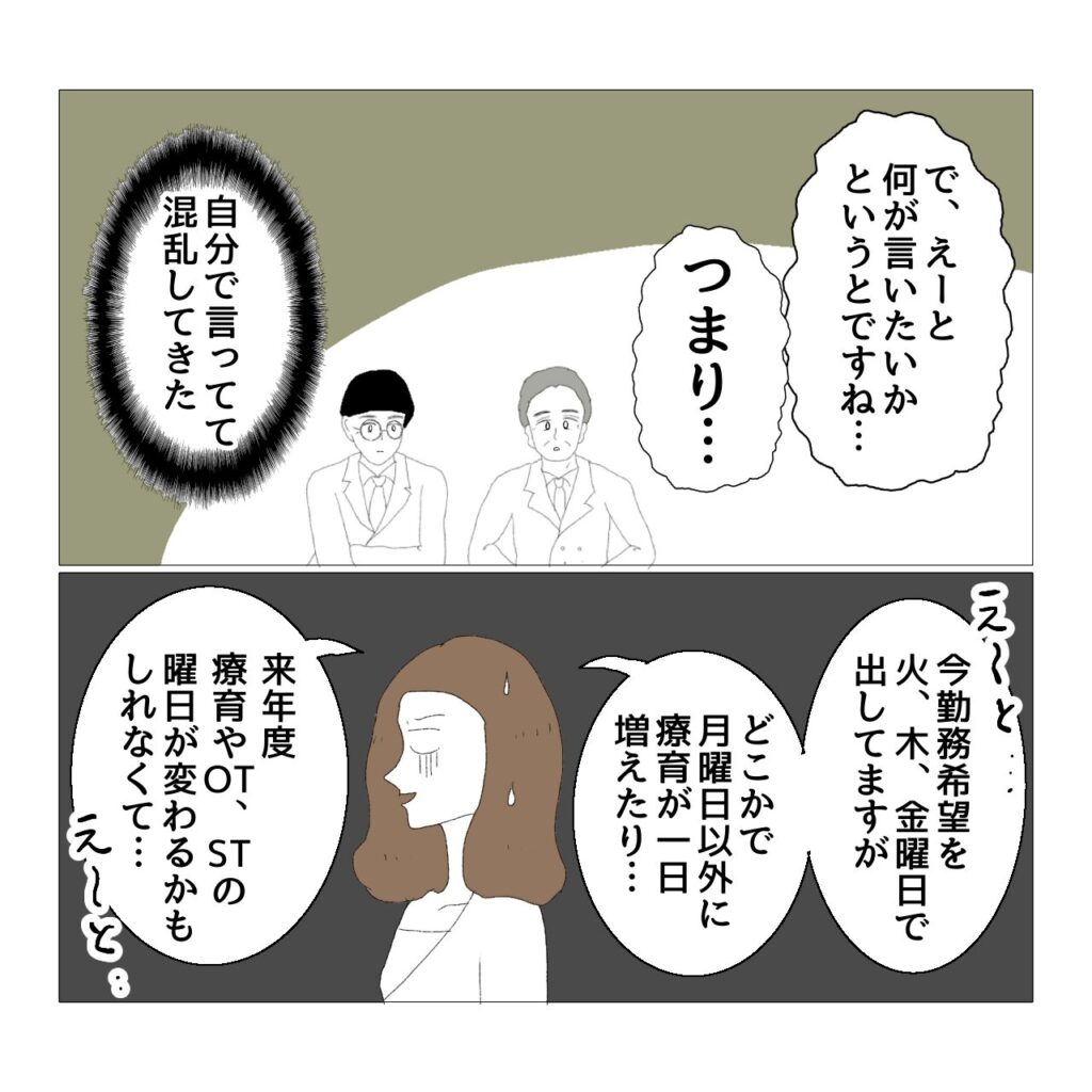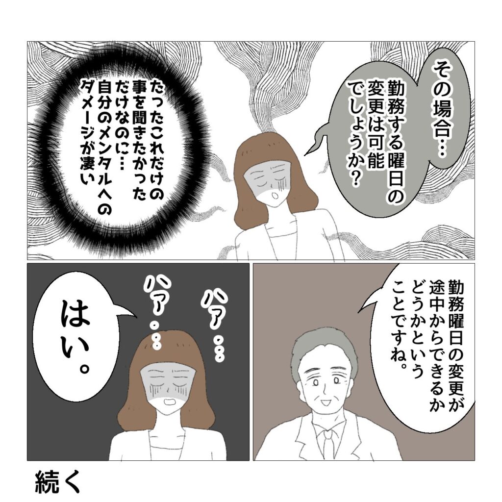 「勤務曜日の変更が途中からできるかどうか」。別にそんなに大したことを聞きたいわけじゃないのに、この時は過呼吸気味になりました。