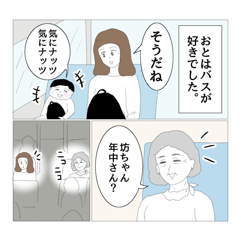謎理論についてはずいぶん前に一度漫画にしたのですが、初めて取無病院に行くバスの中でこんなことあったな~と思いだしたので再度漫画にしました。