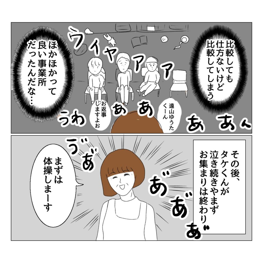 おとのせかい 49 「森の家」見学② 2024.07.01 おとのせかい(1~3歳編) 発達障害, 知的障害, 自閉症, 自閉症スペクトラム おとのせかい 49 「森の家」見学② 広告 広告 あとがき 嫌な予感しかしない…!!ドキドキ… 1 コメントはこちら 同じカテゴリの記事 おとのせかい 75 「わいわい」と白田先生とのお別れ おとのせかい 74 幼稚園・保育園問題 おとのせかい 73 ママ達への周知 おとのせかい 72 再度!転勤準備 おとのせかい 71 またしても おとのせかい 70 白田先生の診察 おとのせかい 69 待ち時間対策 おとのせかい 68 波乱のお便り おとのせかい 67 ユウキ君ママ、噂を流す おとのせかい 66 赤沼or黒沼or遠井町の病院 おとのせかい 65 ユウキ君ママの話③ おとのせかい 64 ユウキ君ママの話② おとのせかい 63 ユウキ君ママの話① おとのせかい 62 転勤先で医療とOTを探す おとのせかい 61 「わいわい」見学⑩ おとのせかい 60 「わいわい」見学⑨ おとのせかい 59 「わいわい」見学⑧ おとのせかい 58 「わいわい」見学⑦ おとのせかい 57 「わいわい」見学⑥ おとのせかい 56 「わいわい」見学⑤ おとのせかい 55 「わいわい」見学④ おとのせかい 54 「わいわい」見学③ おとのせかい 53 「わいわい」見学② おとのせかい 52 「わいわい」見学① おとのせかい 51 「フリーダム」見学② おとのせかい 50 「フリーダム」見学① おとのせかい 49 「森の家」見学② おとのせかい 48 「森の家」見学① おとのせかい 47 おわかれ おとのせかい 46 転勤準備 おとのせかい 45 素晴らしい日々 おとのせかい 44 伸太郎くんママの話⑥ おとのせかい 43 伸太郎くんママの話⑤ おとのせかい 42 伸太郎くんママの話④ おとのせかい 41 伸太郎くんママの話③ おとのせかい 40 伸太郎くんママの話② おとのせかい 39 伸太郎くんママの話① おとのせかい 38 お迎えに行ったら② おとのせかい 37 お迎えに行ったら① おとのせかい 36 一人時間 おとのせかい 35 分離不安がなかったあの頃 おとのせかい 34 療育初日④ おとのせかい 33 療育初日③ おとのせかい 32 療育初日② おとのせかい 31 療育初日① おとのせかい 30 療育契約 おとのせかい 29 偏食 おとのせかい 28 謎理論に翻弄される おとのせかい 27 おとが持つ障害「自閉スペクトラム症」について おとのせかい 26 梅子先生の意見書 おとのせかい 25 小島先生のOT おとのせかい 24 初めてのOT おとのせかい 23 梅子先生の提案 おとのせかい 22 初めての発達検査の結果を聞いた時の話 おとのせかい 21 療育決定 おとのせかい 20 療育見学④ おとのせかい 19 療育見学③ おとのせかい 18 療育見学② おとのせかい 17 療育見学① おとのせかい 16 初めて発達検査を受けた話 おとのせかい 15 梅子先生の診察 おとのせかい 14 初めての発達外来 おとのせかい 13 夫婦で初めて障害について話した日 おとのせかい 12 一歳半健診② おとのせかい 11 一歳半健診① おとのせかい 10 同級生に会い、ある決意をする おとのせかい 9 定型発達児とピクニックに行ってみたら② おとのせかい 8 定型発達児とピクニックに行ってみたら① おとのせかい 7 私は、定型発達の子の親とママ友になれるのか? おとのせかい 6 知らない街 おとのせかい 5 迷子紐を使ってみたら 後編 おとのせかい 4 迷子紐を使ってみたら 前編 おとのせかい 3 迷子紐 おとのせかい 2 心と心 おとのせかい 1 母の気付き 前の記事 おとのせかい 48 「森の家」見学① 2024.07.01 次の記事 おとのせかい 50 「フリーダム」見学① 2024.07.01 アプリなら通知ですぐ読める! NAPBIZブログ