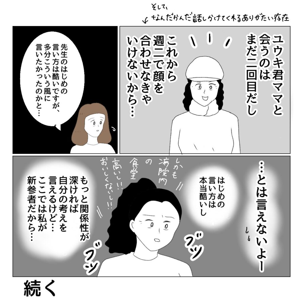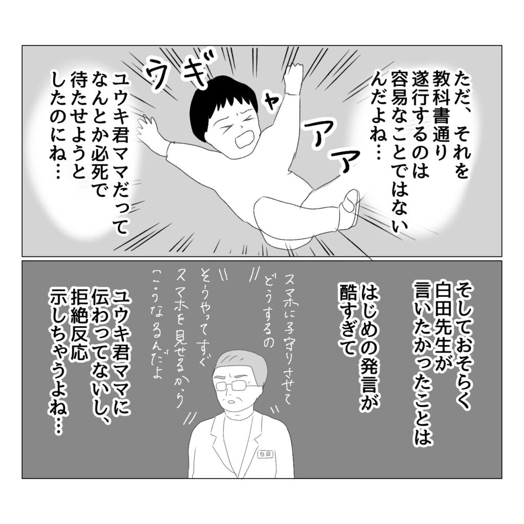 多分白田先生はこういう意図で言ってたのかな?と思ったのですが、私はその場にいなかったし、新参者だし、白田先生がはじめに言った言葉はひどいし、そもそも育児に答えなんてないしで、何も言えませんでした。