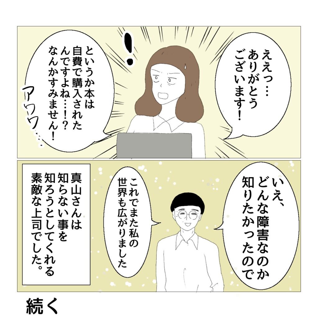 パートの職場は、上司の真山さんのお陰でとっても働きやすい環境でした…!!この人はこうやっていつも視野を広げているんだな…と感動を覚えた思い出です。